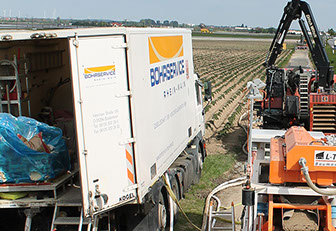 Mit allem erforderlichen Equipment rücken unsere Bohrzüge zu Ihrem Projekt aus. Zügig und ohne großen Zeitaufwand werden die Vorbereitungen getroffen, die Bohranlage wird in Position gebracht, das geeignete Bohrwerkzeug montiert, die Bohr-Suspension im Lkw angemischt und die Spülung angeschlossen. Noch einmal bespricht unser Anlagenführer mit Ihrem Projektleiter wichtige Einzelheiten, der Bohrablauf wird genau festgelegt und dann beginnt die Bohrarbeit!